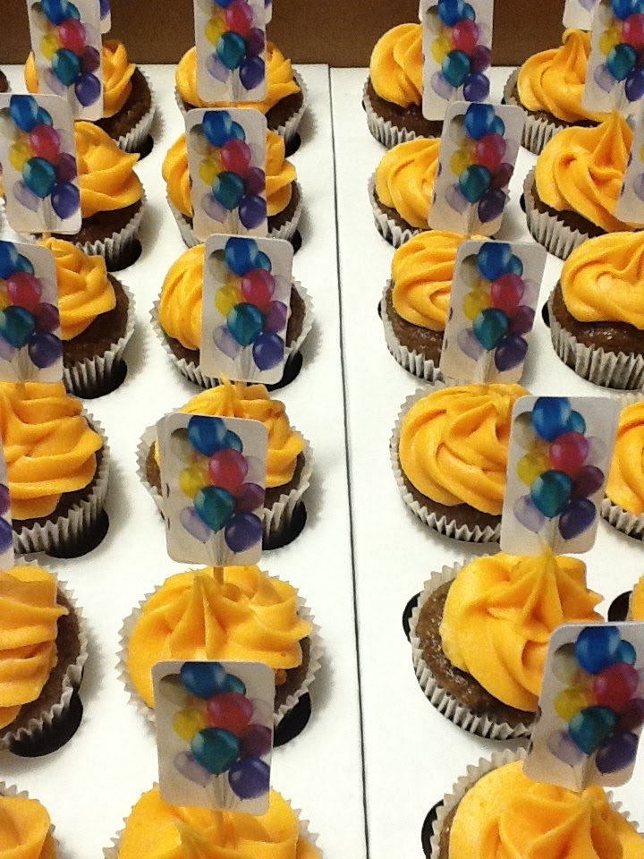Uma coisa que adoro fazer para enfeitar os cupcakes são os "pins", aquelas bandeirinhas que ficam espetadas nos cupcakes. Faço questão de pesquisar o tema da festa e ir buscar alguma imagem do tema. Depois, imprimo em etiquetas auto adesivas e colo frente e verso nos palitinhos. Aí é só espetar e enfeitar a festa!